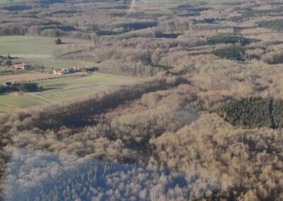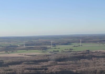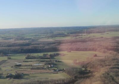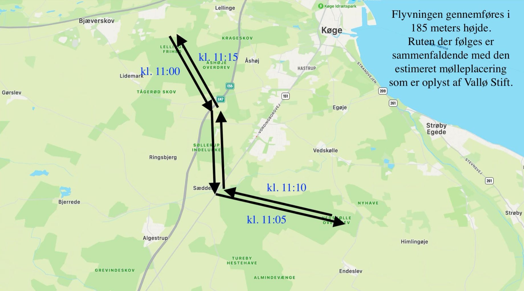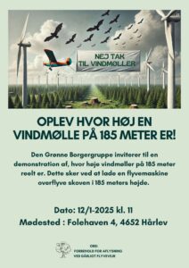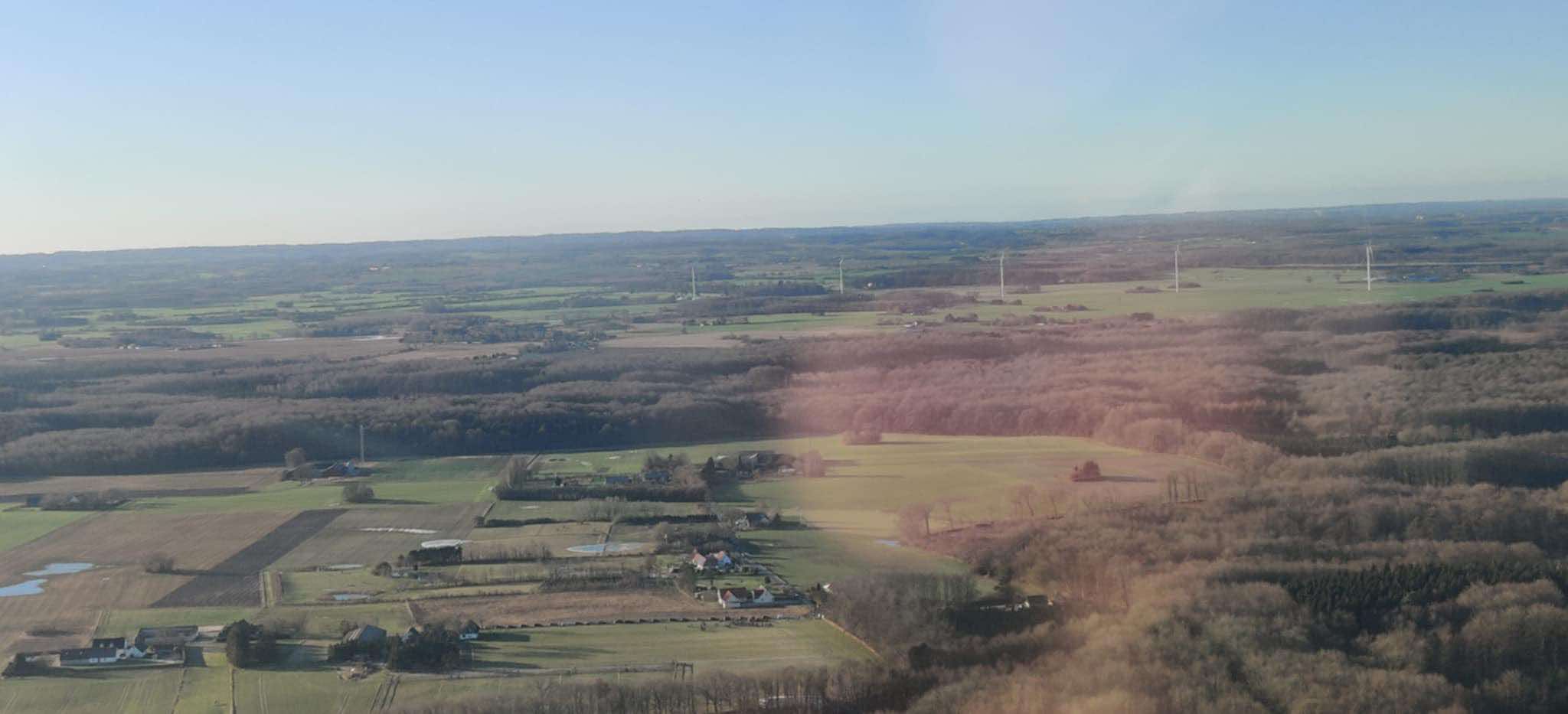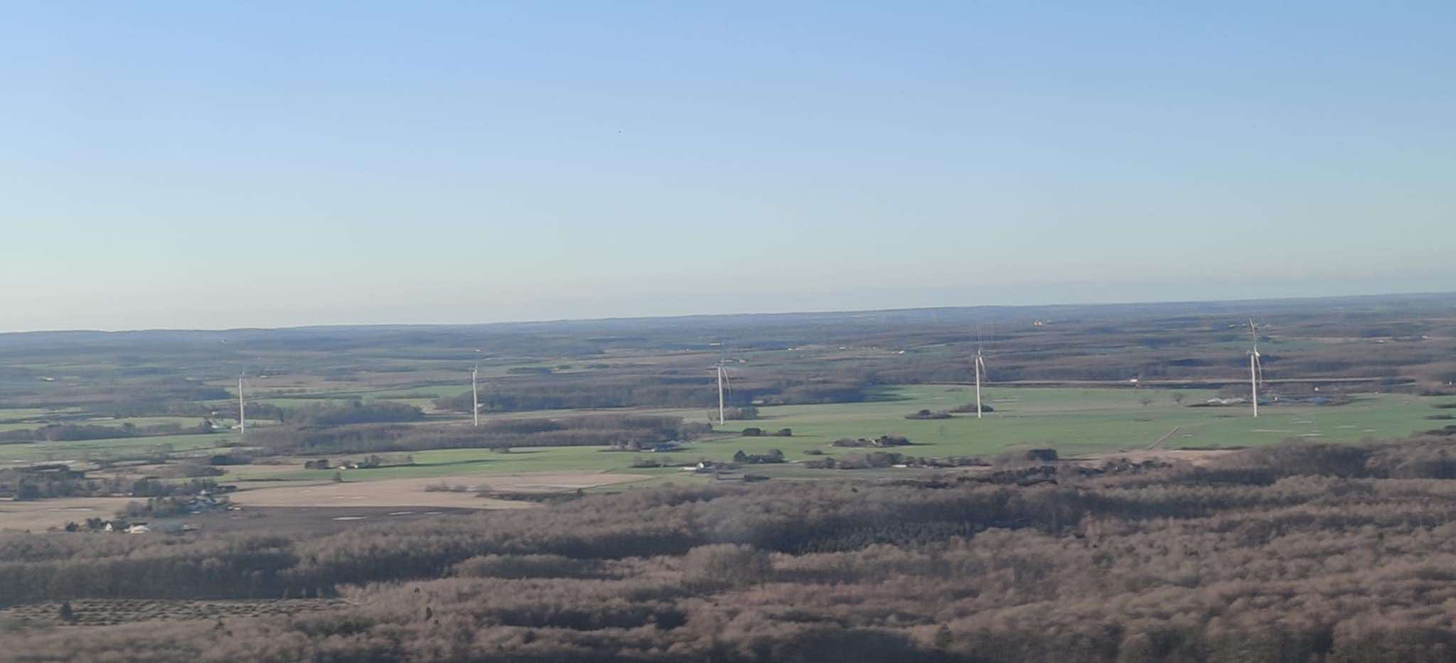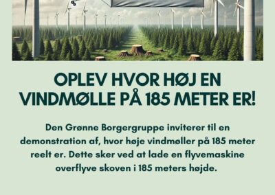 Den Grønne Borgergruppe arrangerede en overflyvning i 185 meters højde over af Lellinge Frihed og Vallø Storskov for at vise, hvor høje vindmøllerne bliver i forhold til skoven.